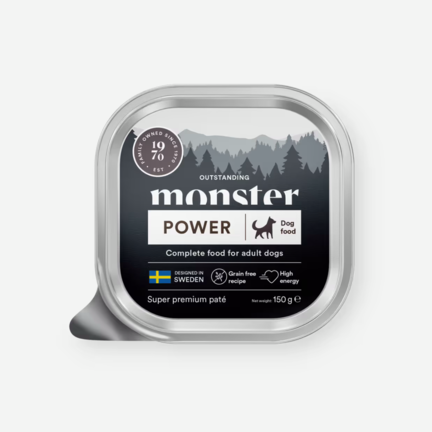 Har din hund brug for ekstra energi for at kunne yde sit bedste? Prøv Monster Dog Power Paté – et energirigt vådfoder udviklet til hunde med et højt aktivitetsniveau.