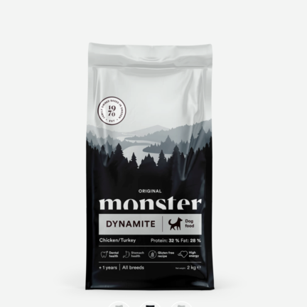 Monster Original Dynamite er udviklet med en målrettet ernæringssammensætning, der understøtter vedvarende energi, optimal præstation og en sund fordøjelse. Foderet hjælper din hund med at bevare styrke, udholdenhed og fokus – så den kan yde sit bedste, hver dag.